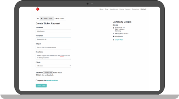 We offer our customers support based on Incident Management according to ITIL V4. In order to provide fast and secure support, our customers receive a "hot email address". Authorized requests that reach us via this channel are immediately forwarded to the responsible support team for processing.
