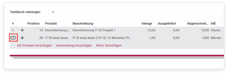 When working with ITISeasy.business you can easily fold in lines like that one, without loosing crucial product information for example. Your view during your work on the documet is more clear od organised.